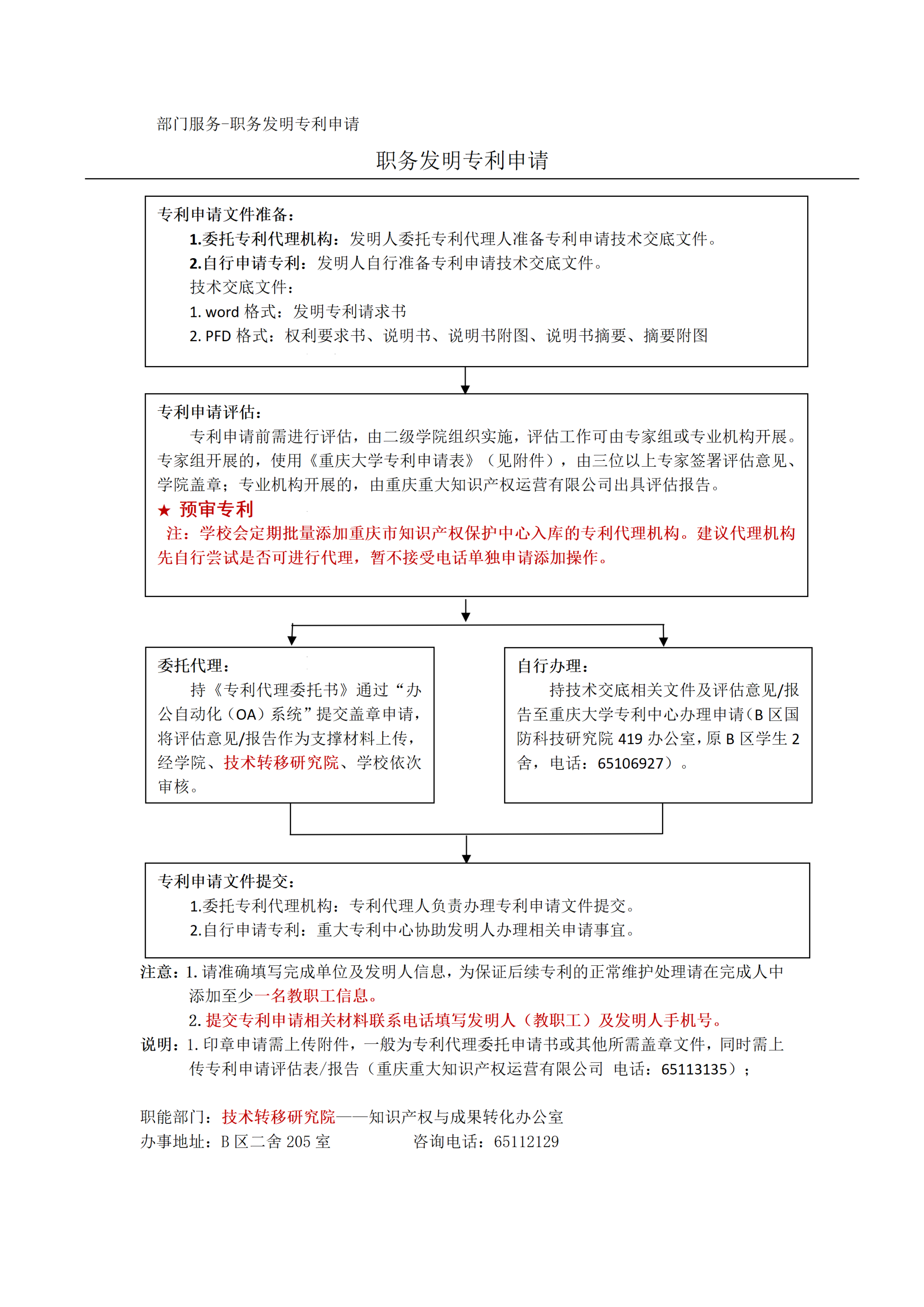 重庆大学职务发明专利申请工作流程